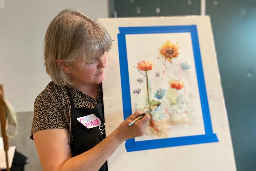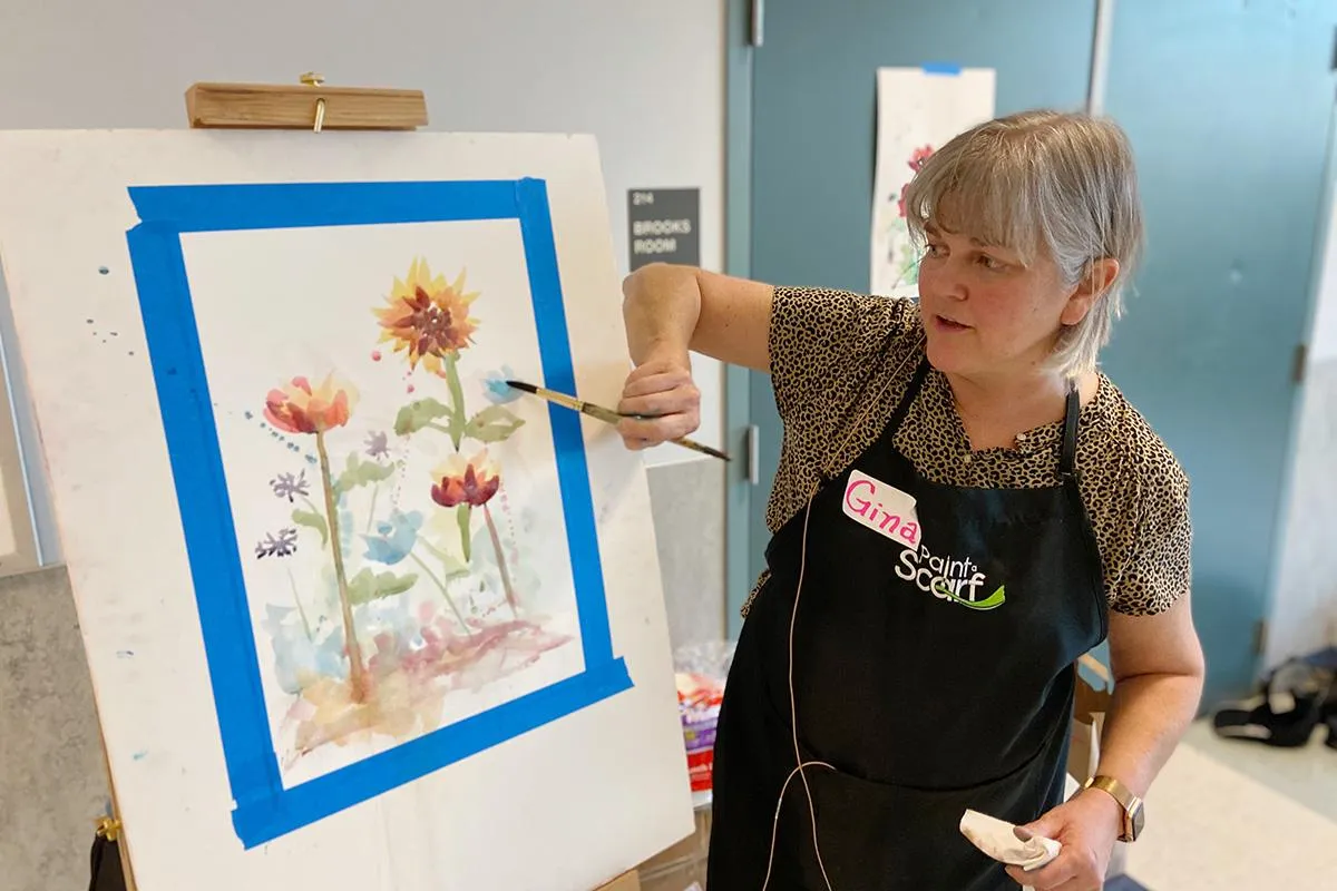 Gina can lead your group through a custom paint-along. Either in-person or virtually.