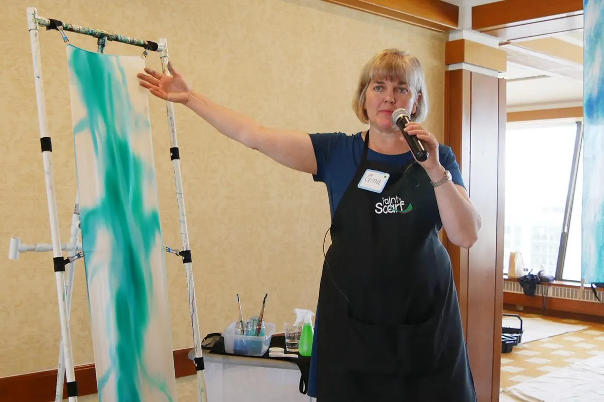 Gina can create an original work of art as she presents on art, entrepreneurship, or a variety of other topics.